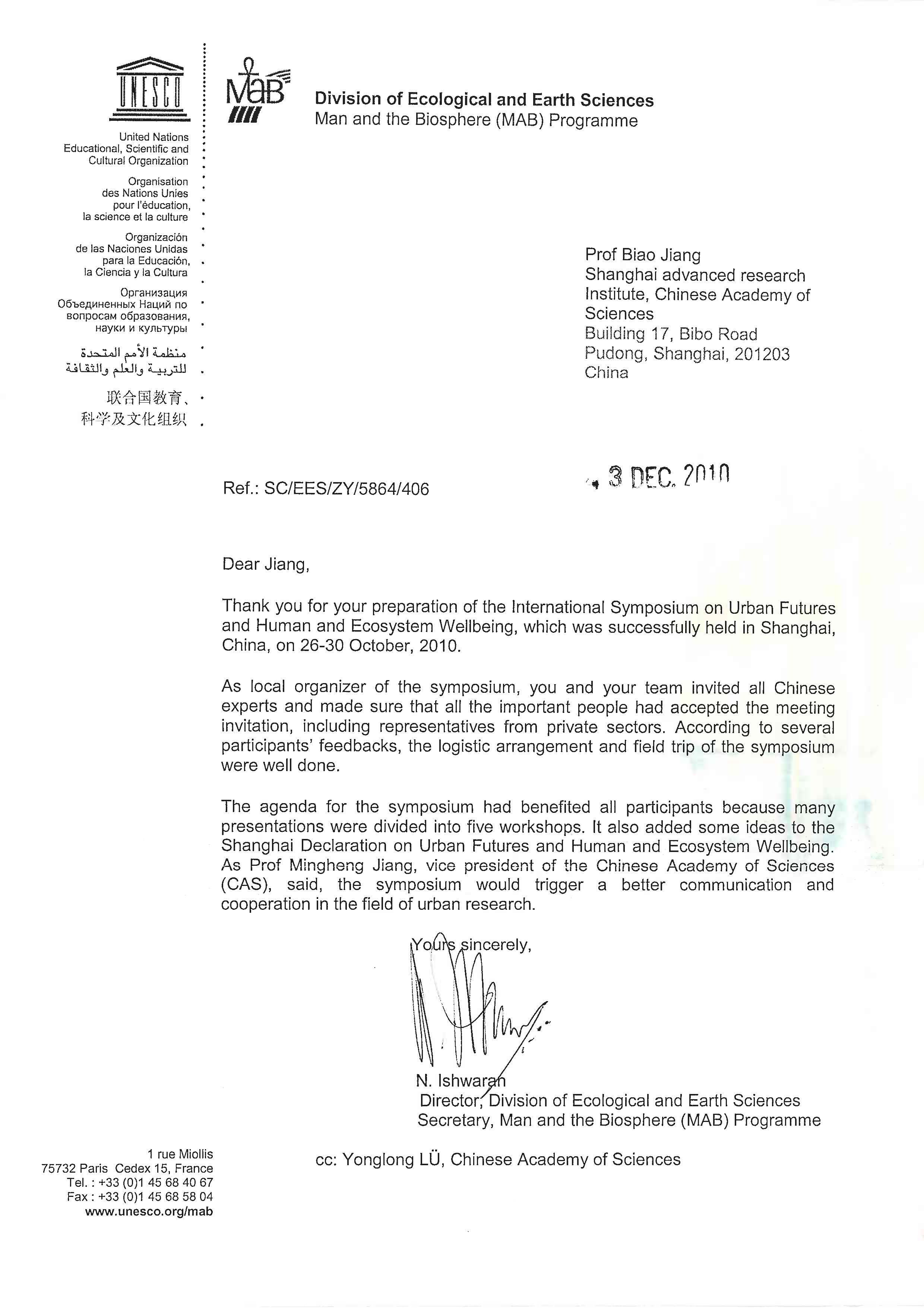 The International Symposium on Urban Futures and Human and Ecosystem Wellbeing, co-organized by Chinese Academy of Sciences (CAS) Shanghai Branch and Shanghai Advanced Research Institute of CAS, was well received by attendees and participating organizations. United Nations Educational Scientific and Cultural Organization (UNESCO) and Scientific Committee on Problems of the Environment (SCOPE) thought highly of the symposium and expressed their thanks and congratulations for the successful event.