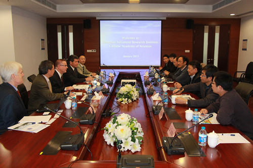 January 21 2013, a delegation from INVISTA, headed by Dr. Gerry Grunewald, Technology Director of Intermediates, visited Shanghai Advanced Research Institute, Chinese Academy of Sciences (SARI-CAS). Vice President of SARI Professor Jiang Biao received the visitors. Researchers from Shanghai Institute of Organic Chemistry (SIOC), The Institute of Coal Chemistry (ICC), and SARI-CAS attended the meeting.