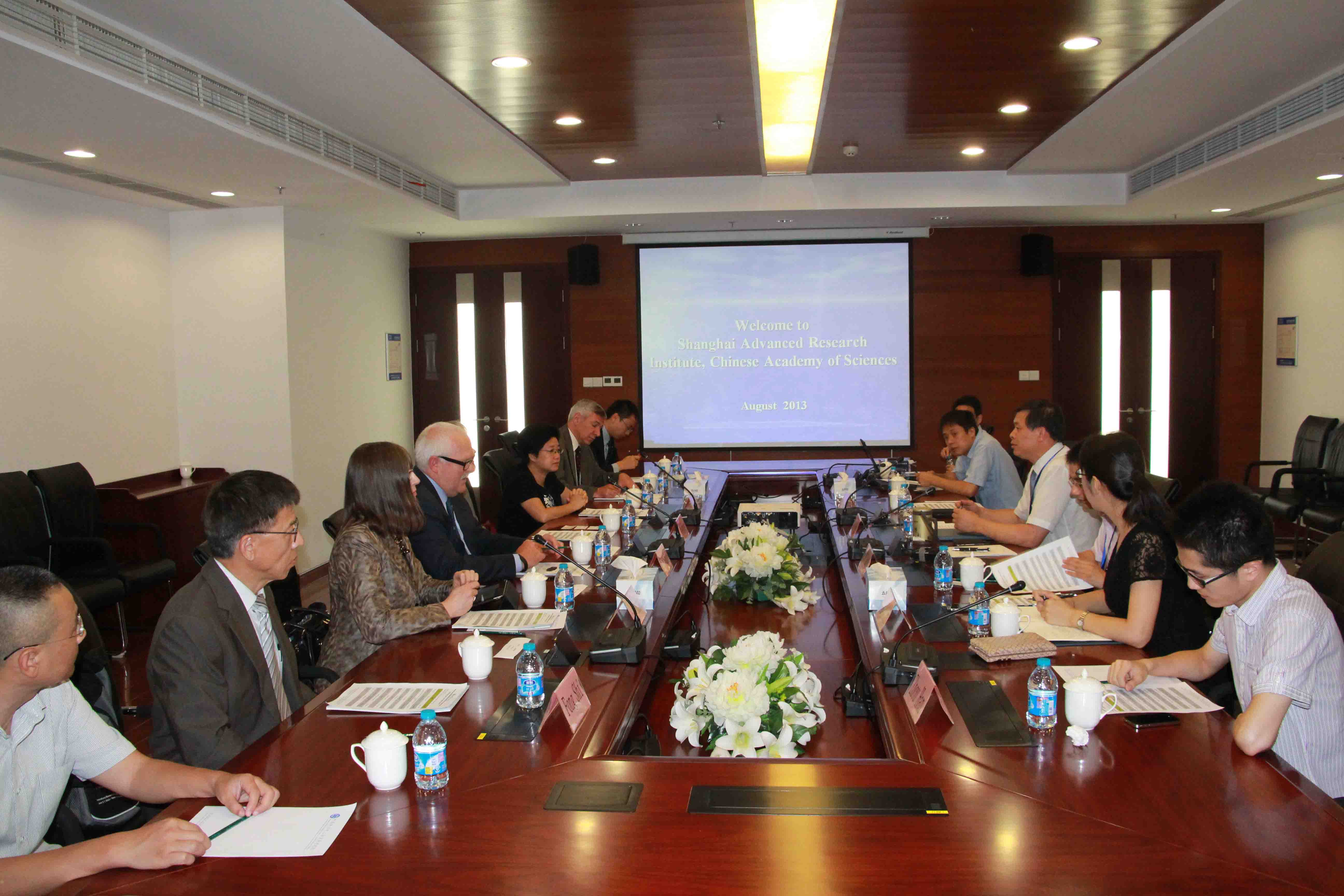 August 8th, 2013—Vice President of Boeing research & technology Mr. Don Winter, Vice President of Boeing research & technology China Dr. Dongyang Wu and Vice President of Digital Aviation Technology of Boeing Commercial Airplanes Mr. Alan Johnson visited Shanghai Advanced Research Institute, Chinese Academy of Sciences. President of SARI Dr. Feng Songlin received the Boeing delegation, accompanied by Dr. Xu Haoyu, Director of the Joint Lab for Aviation Connectivity Technology and other related researchers.