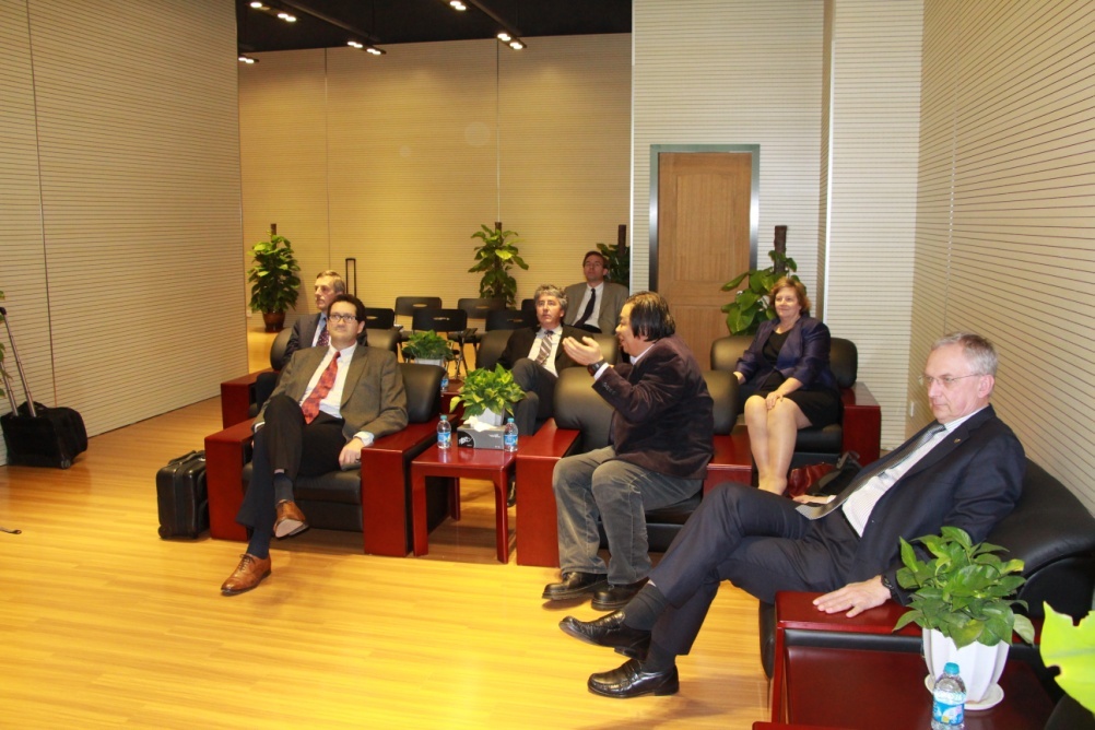 Dr. Jiang Mianheng welcomed the delegation and introduced the mission of CAS Puodong Science Park and ShanghaiTech, followed by presentation by Dr. Gong Jinkang, memember of the Executive Committee of ShanghaiTech, who elaborated on the integration of ShanghaiTech and SARI and the concept of the innovation value chain of Pudong Science Park.