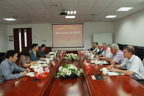 On May 19, a delegation led by Professor Valentin SERGIENKO, Academician and Vice President of the Russian Academy of Sciences (RAS) paid a visit to SARI. Vice President Huang Weiguang received the RAS delegation and discussed with them regarding cooperation opportunities. Executive Deputy Director Zhang Liliang and relevant researchers attended the meeting.
