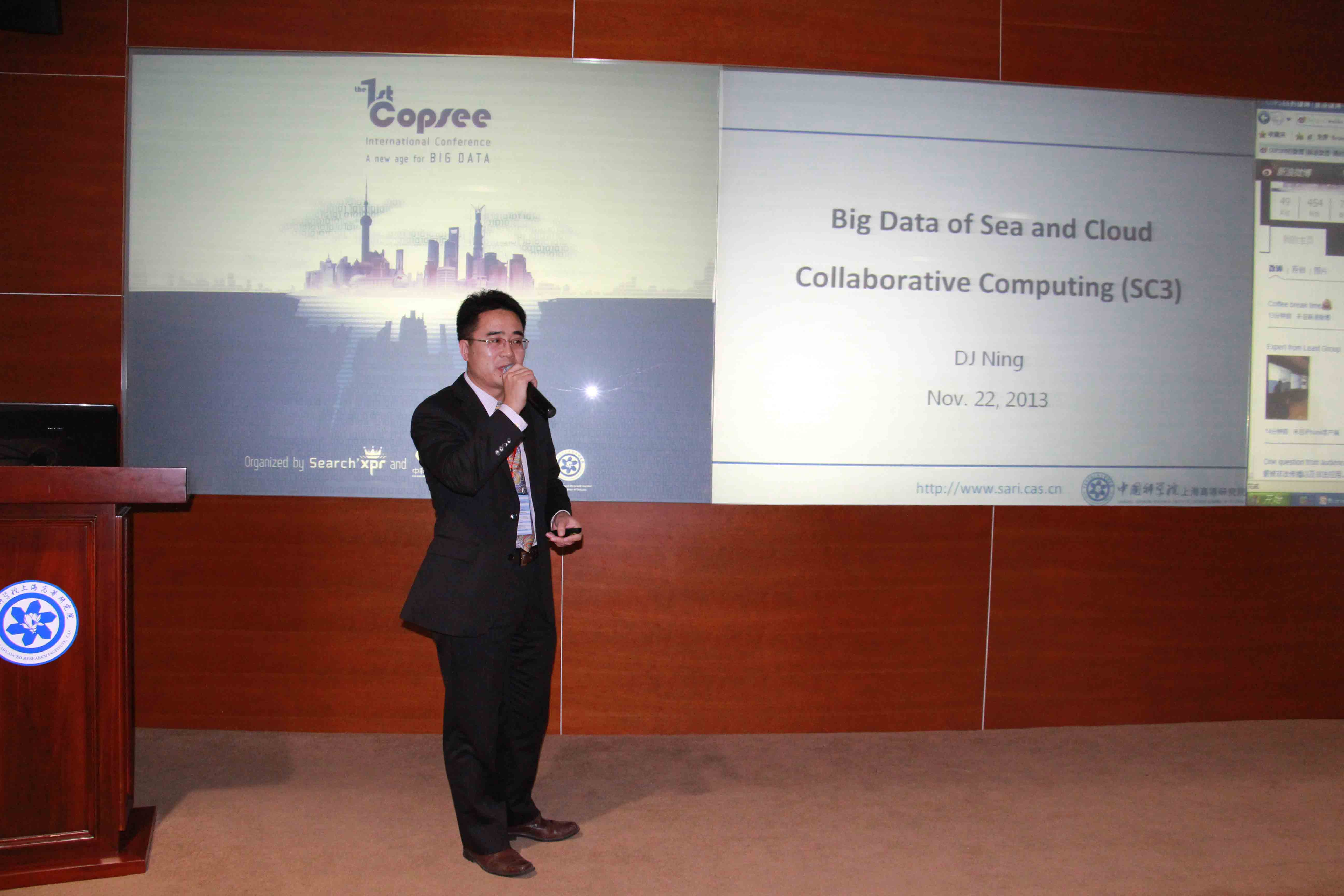 The first COPSEE International Conference of Big Data, co-organized by SEARCH’XPR and CAS Data, hosted by Shanghai Advanced Research Institution (SARI), Chinese Academy of Sciences (CAS), was held in the conference hall of SARI, in Nov 22, 2013.