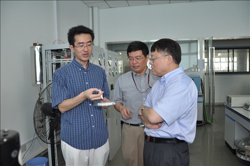 On September 29, 2011, Prof. JIANG Mianheng, Vice President of Chinese Academy of Sciences (CAS) inspected labs of two centers of SARI: the Low Carbon Energy Conversion Technology Center and Clean Power Technology Research Center in the East Area of Zhangjiang Hi-Tech Park.
