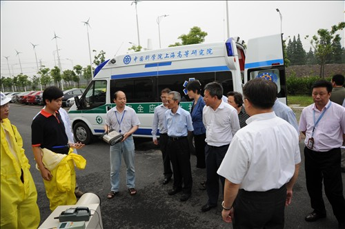 June 28, 2012 – Mr. YANG Xiong, Executive Vice Mayor of Shanghai, Mr. SHEN Xiaoming, Vice Mayor of Shanghai, and leaders from relevant departments and commissions of Shanghai Municipal Government inspected Shanghai Advanced Research Institute of Chinese Academy of Sciences (SARI-CAS) and Shanghai Science and Technology University (under preparation). After visiting the Shanghai Engineering Center for Microsaellites and the City Intelligent Energy Network demonstration project of SARI-CAS, Mr. YANG Xiong and Mr. SHEN Xiaoming listened to the science and technology innovation report of CAS Shanghai Branch. Prof. JIANG Mianheng, President of CAS Shanghai Branch, attended the above-mentioned event.