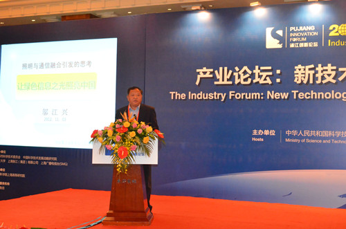 The grand opening of 2012 Pujiang Innovation Forum, jointly hosted by Ministry of Science and Technology of the People's Republic of China, and Shanghai Municipal PeopleA's Government, was held in Pudong, Shanghai on November 3, 2012, with the theme of "2012 Industrial Evolution and Innovation Eco-System".