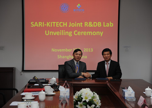 On November 15th 2013, the Korea Institute of Industrial Technology delegation, headed by President Dr. Kyoung-Hoan Na, paid a visit to Shanghai Advanced Research Institute (SARI), Chinese Academy of Sciences. President of SARI Dr. Feng Songlin received the KITECH delegation, accompanied by International Cooperation Department representatives and relevant researchers. The MoU Agreement Signing and SARI-KITECH Joint R&DB Lab Unveiling Ceremony were held at SARI.