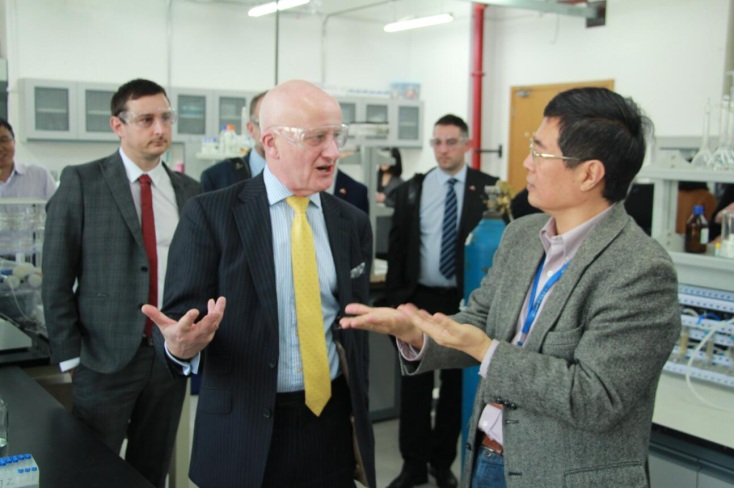 December 5, 2016 – A delegation led by John Loughhead, Chief Scientific Adviser, Department for Business, Energy and Industrial Strategy, paid a visit to Shanghai Advanced Research Institute, and was warmly welcomed by President Feng Songlin, Vice President Sun Yuhan and Assistant President Wei Wei.