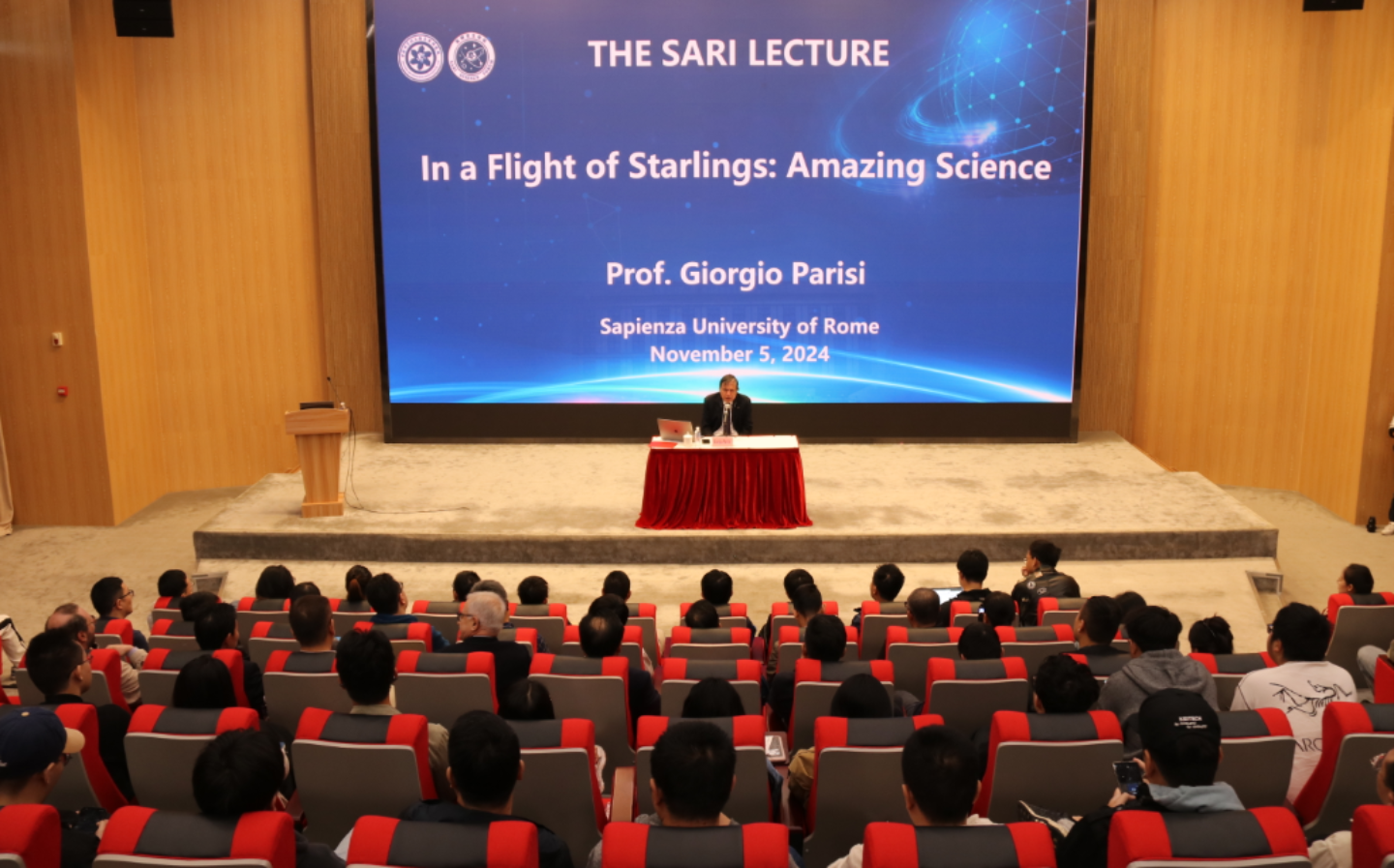 On November 5, Prof. Giorgio Parisi, the 2021 Nobel Laureate in Physics and Professor at Sapienza University of Rome, delivered an insightful and engaging lecture for the 3rd “SARI Lecture”, titled “In a Flight of Starlings: Amazing Science”. He shared his inspirational stories and insights on the intersections of complex systems in his talk and attracted more than 200 attendees.