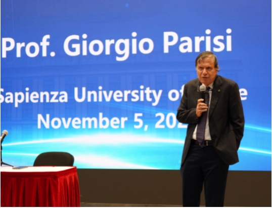 Prof. Parisi started the talk with reviewing his research background of elementary particles and quantum field theory to statistical physics, condensed matter and complex systems. He noted that cross-disciplinary research can stimulate one’s potential to make important discoveries.