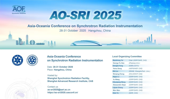 The Asia-Oceania International Conference on Synchrotron Radiation Instrumentation (AO-SRI2025) will be hosted by Shanghai Advanced Research Institute, CAS in Hangzhou from October 28-31 2025.