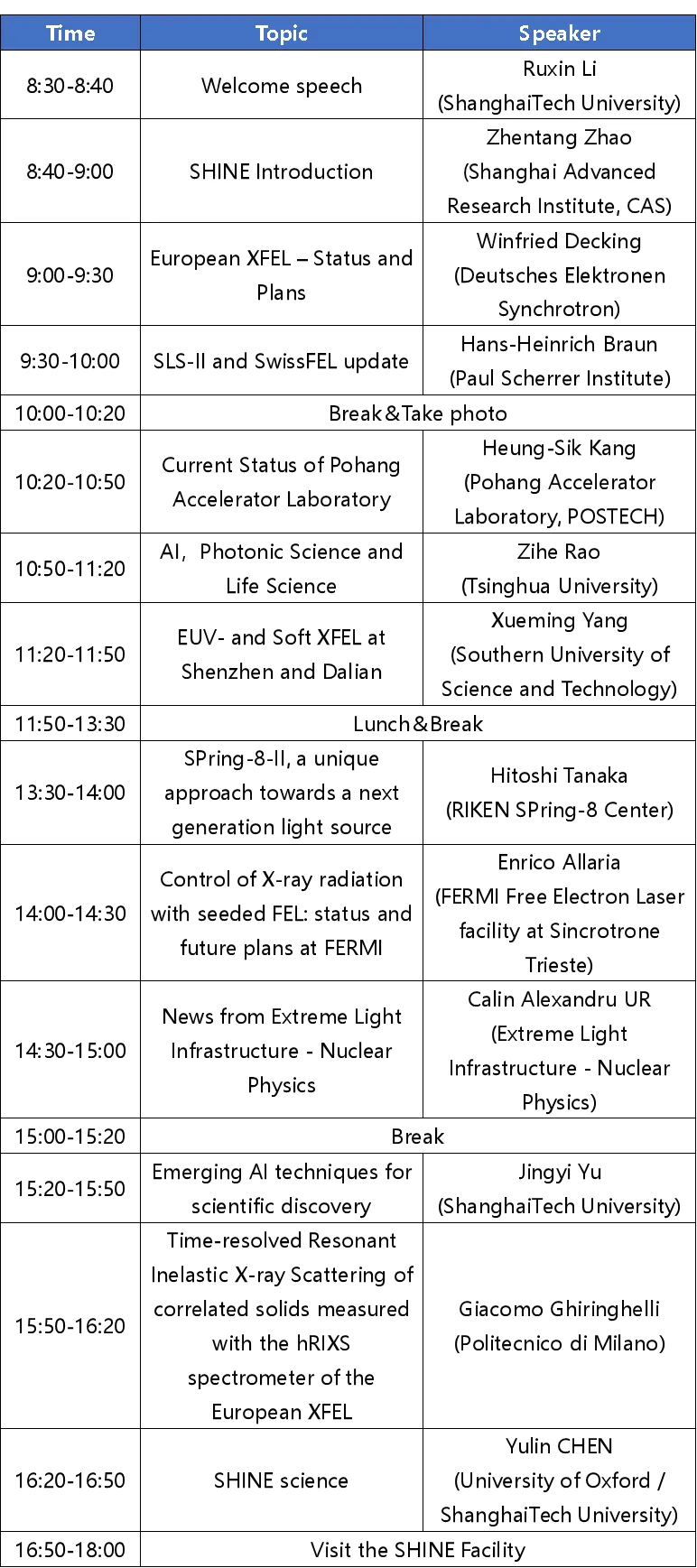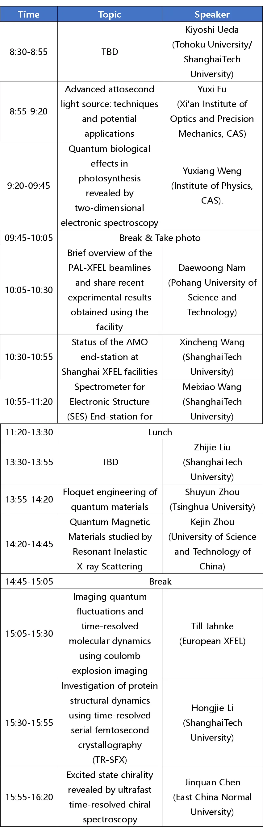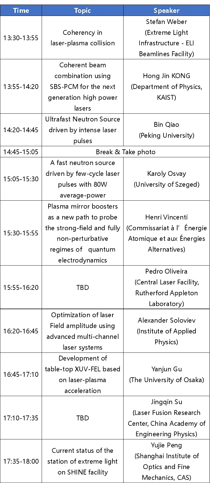 (5) Station of Extreme Light Session: Room 303 of Teaching Center.