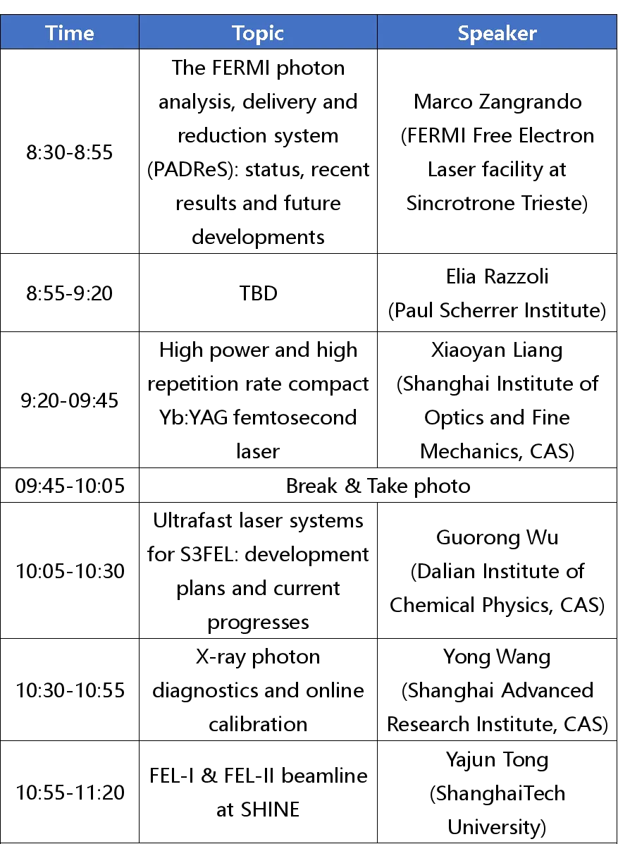 (3) Beamline and Laser Technologies Session: Room 301 of Teaching Center.
