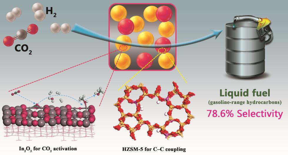 Figure: Direct conversion of CO2 into liquid fuels with high selectivity over a bifunctional catalyst (Image by GAO Peng)