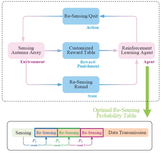Motivated by such a challenge, a research team led by Prof. HU Honglin and Prof. XU Tianheng at Shanghai Advanced Research Institute (SARI) of the Chinese Academy of Sciences provided a novel spectrum sensing technique, seeking a feasible way to combine the reinforcement learning concept with advanced spectrum sensing methods so as to optimize the performance of the cognitive radio network under multifarious scenarios in 5G communications. The research results were published in the latest issue of IEEE Wireless Communications entitled “Intelligent Spectrum Sensing: When Reinforcement Learning Meets Automatic Repeat Sensing in 5G Communications.”