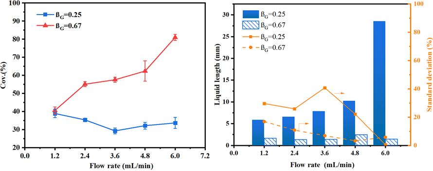 Figure 3. Effects of total flow rate on the nitrobenzene conversion and the liquid segment length in the gas-liquid-solid segmented flow (Image by SARI)