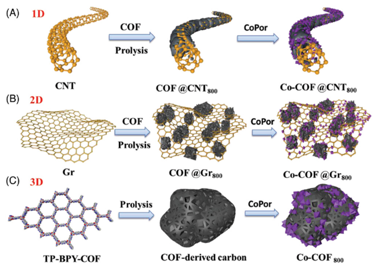 Synthesis of 1D — 3D carbon materials derived from COFs (Image by SARI)